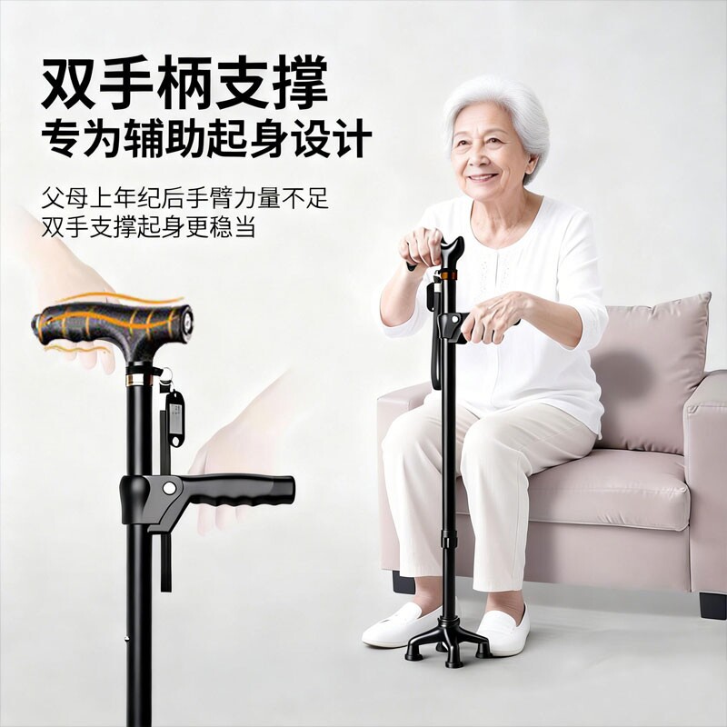 アルミ合金製の杖、四本足の滑り止め伸縮松葉杖(ライト付き)、高齢者用の専用松葉杖、肘掛け、伸縮杖、歩行補助具