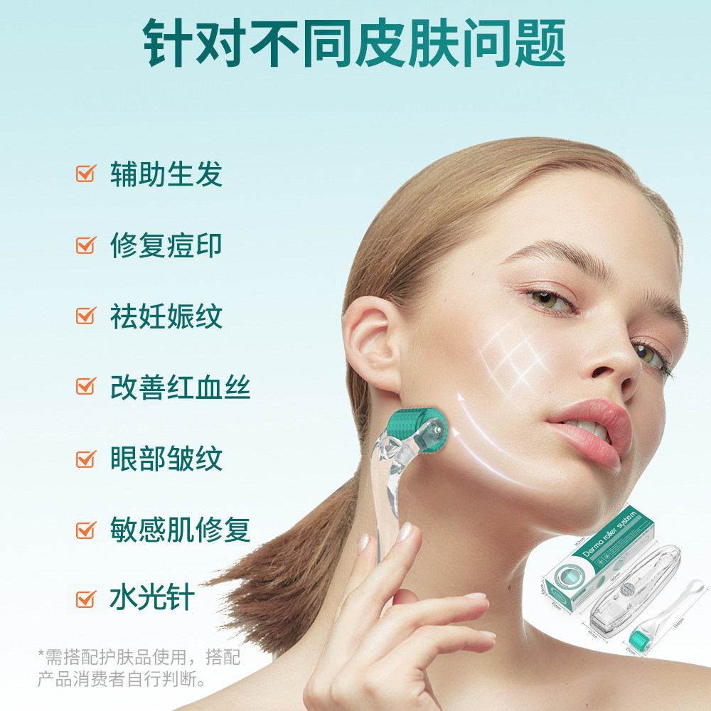 ニードルローラー、マイクロニードルローラー、ヘアプロデュース、家庭用保湿、ライトイントロメント、セルフクローズングマウス、細かいシワ、妊娠中のニキビマーク、毛穴