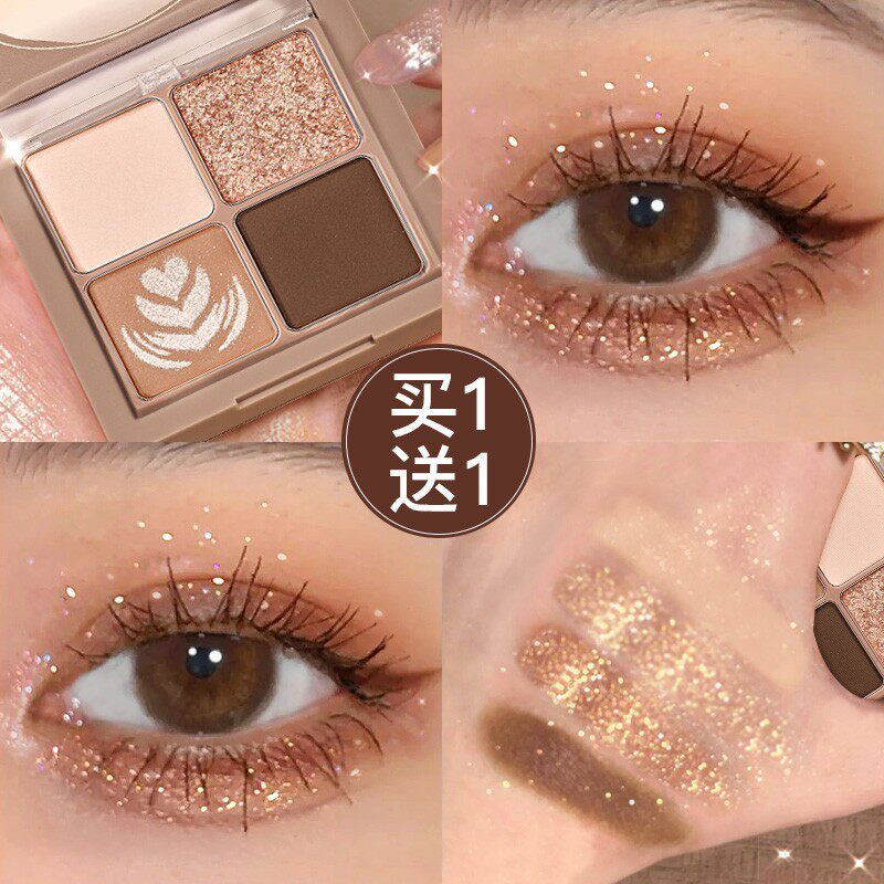 Kazilan 4色アイシャドウパレット、ミルクティー、アースカラー、インズグリッター、パリティ、学生 本物公式 2025年、新しい女性