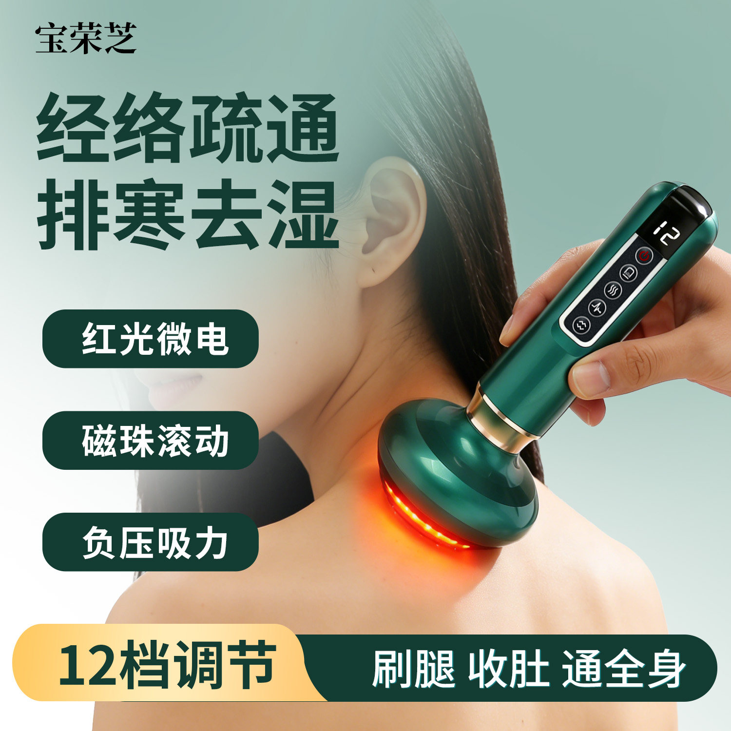宝容芝全身用電気経絡ブラシ、一般的な浚渫、除湿、刮痧、カップ、スリム、スリム、腹部、風邪緩和のギフト