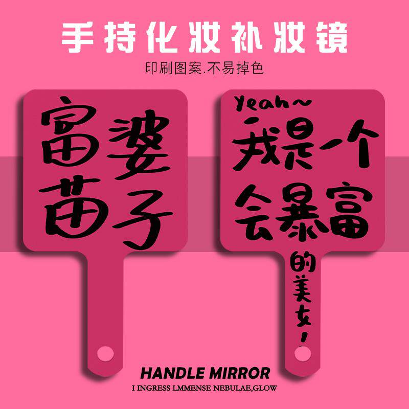 裕福な女性苗子の性格テキストは、手持ちのメイク鏡、学生の高精細ハンドル、鏡のメイク、メイクのタッチアップ、小さな鏡を携えています。