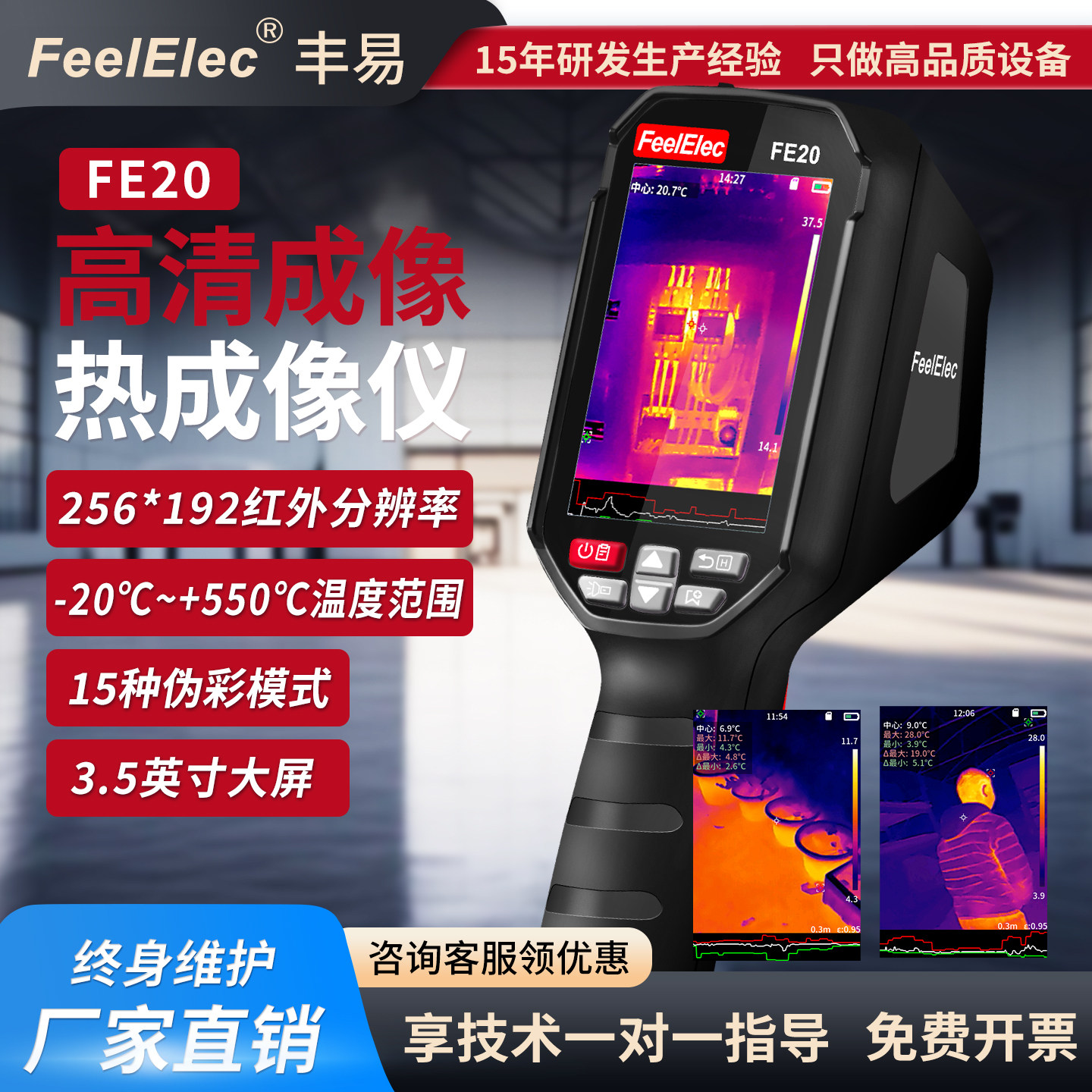 ハンドヘルドサーマルイメージャー FE20 赤外線サーマルイメージングカメラ HD回路検出 漏水修理検知器 温度計
