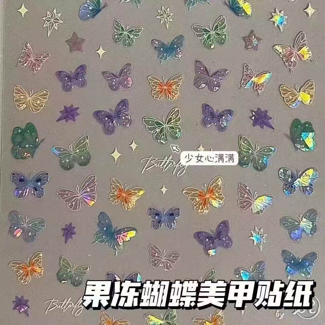 小紅樹爆発蝶の羽のストリーマーステッカー、高級フラットネイルアート、美容フェイスメイクパッチ、フェアリーネイル