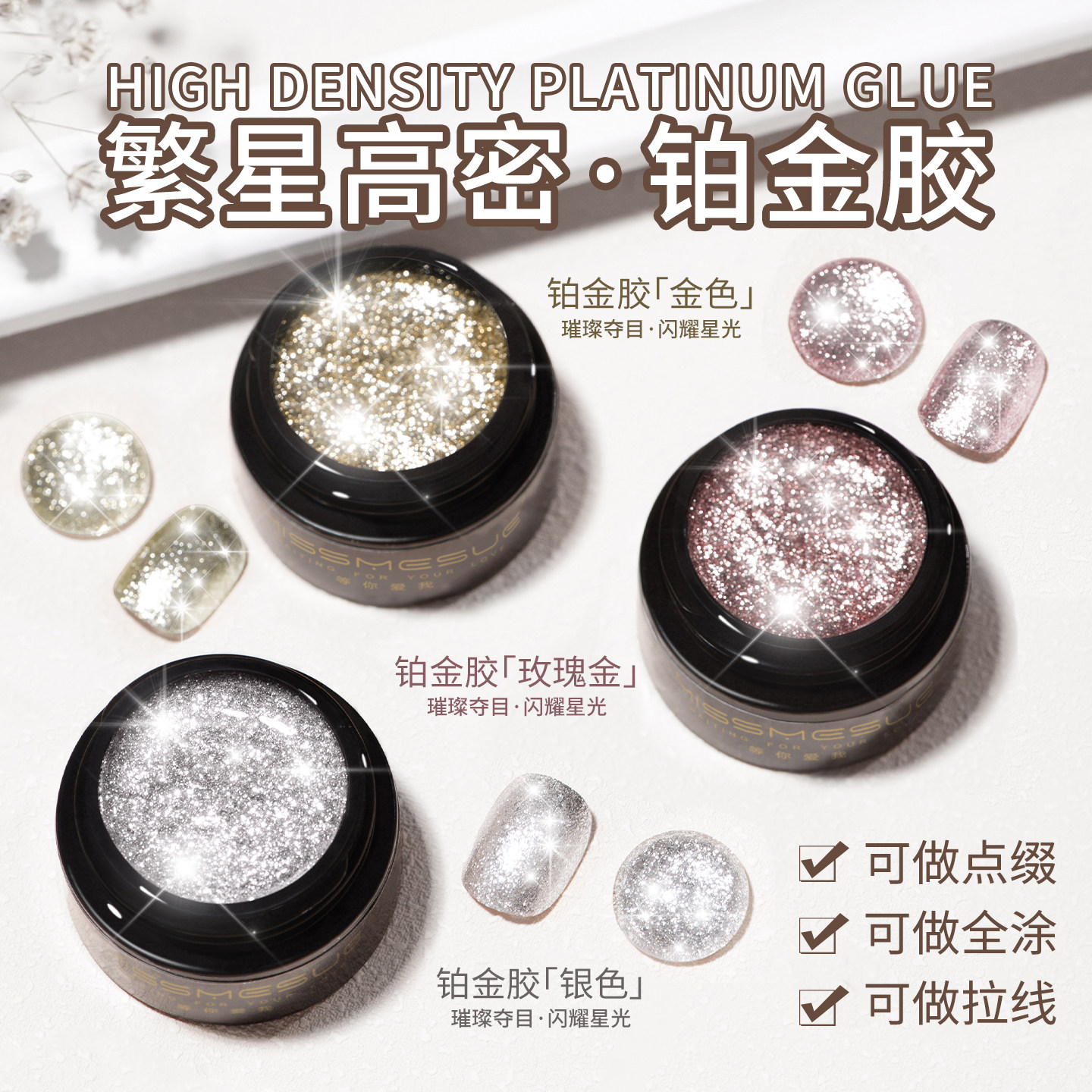 日本風星光高密度プラチナグルー、ポッピンググリッターネイルアート、細いグリッターシルバー、ドローライン、フックエッジ、ペイント、ネイルポリッシュグルー