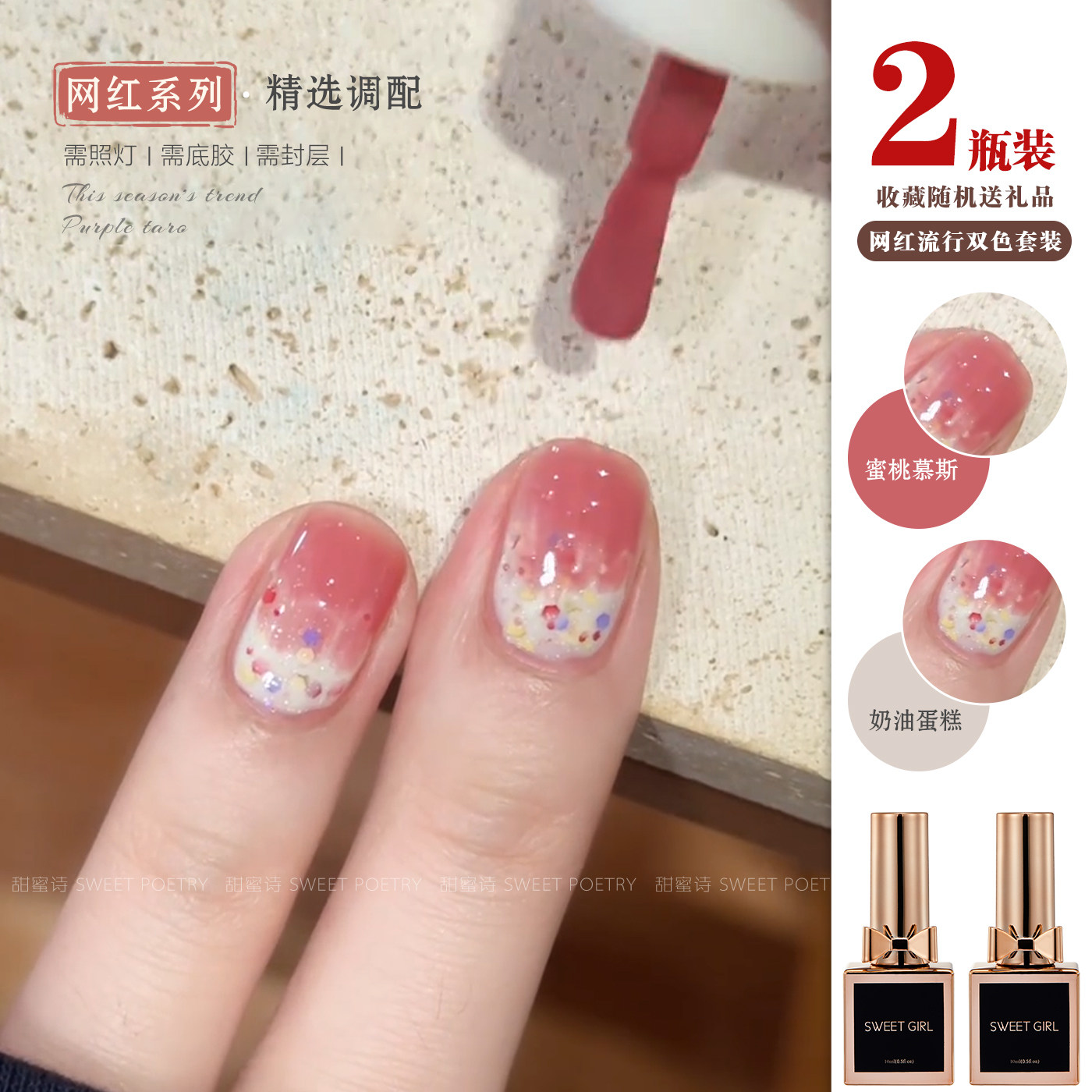ピーチケーキのアイススルー ネイルポリッシュグルー 2026 新しい春夏 インターネットセレブのフラッシュ 北島のスパンコール 白いネイルアート