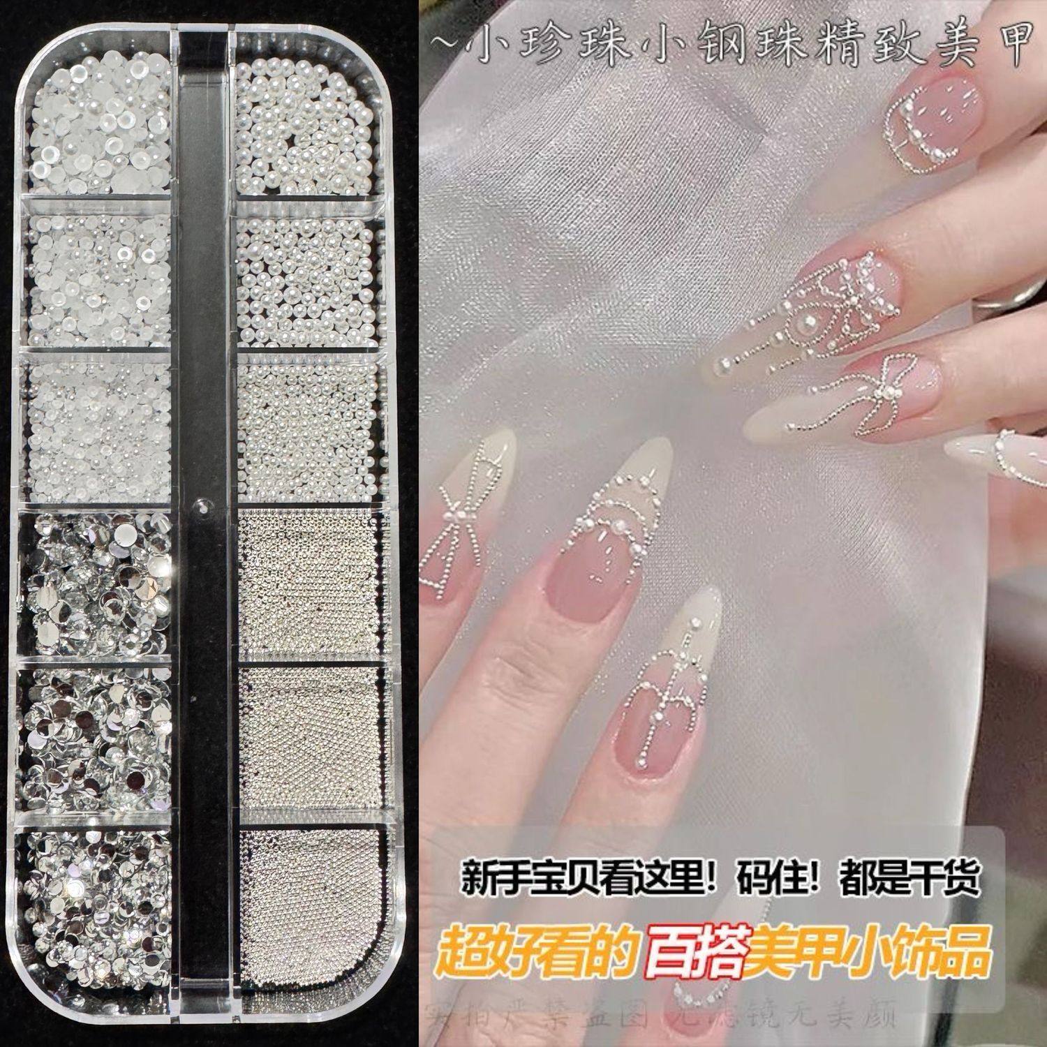 ネイルアクセサリー 半円形フルガーデン 高光沢パールシルバー ミニスチールビーズ 多用途ミックスネイルウェア ネイルアクセサリー