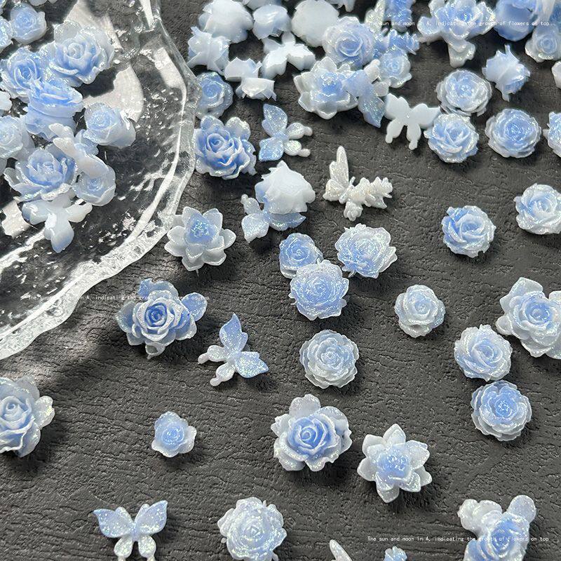 新しいブルーソフトセラミックフラワーバタフライシリーズネイルアクセサリー、レジンルミナスDIY、多用途装飾アクセサリー