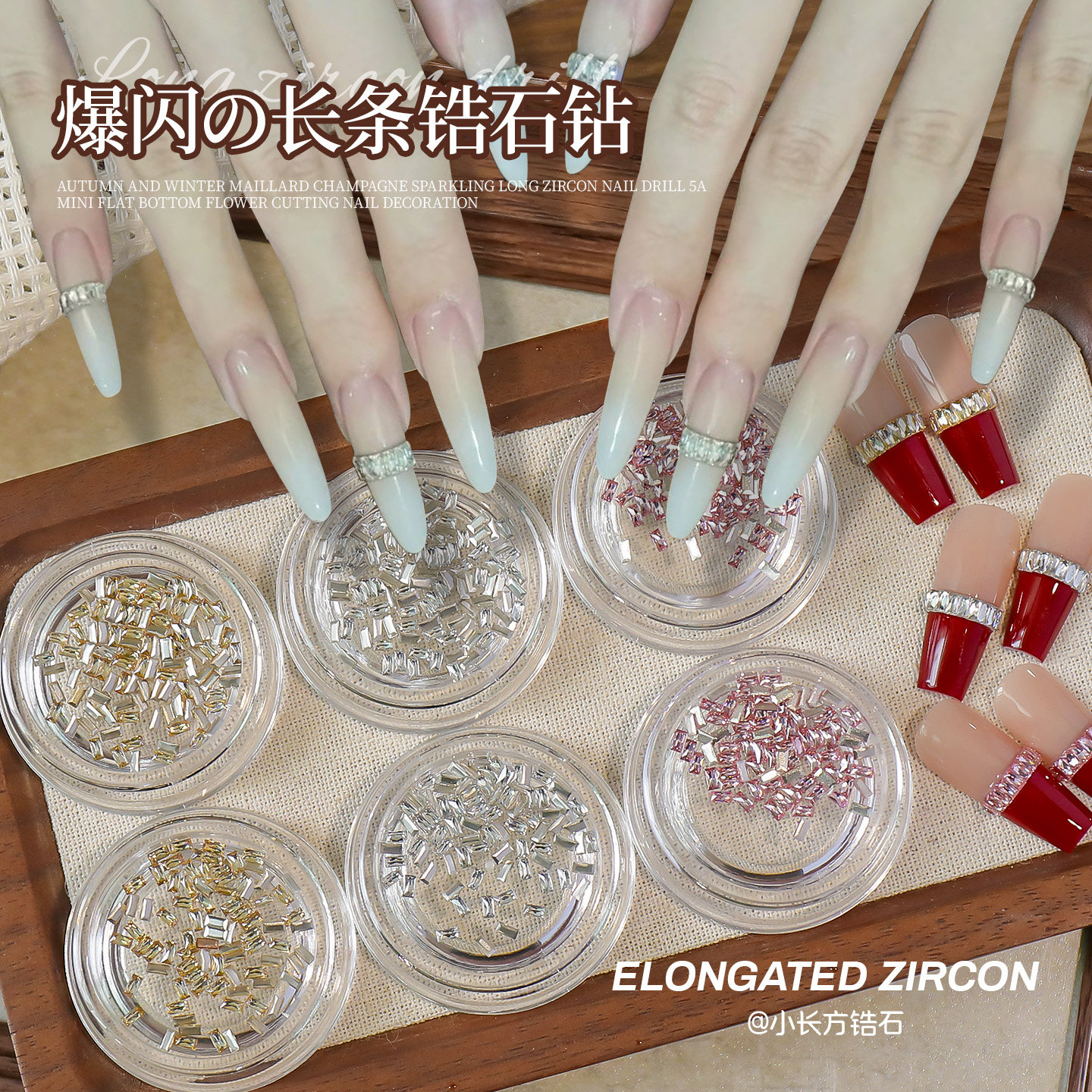 秋冬の小さな長いネイルアート ダイヤモンドベルト ダイヤモンドバースト 5A フラットボトム 華子カットジルコン ネイル ダイヤモンドネイルオーナメント