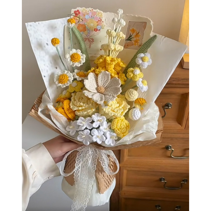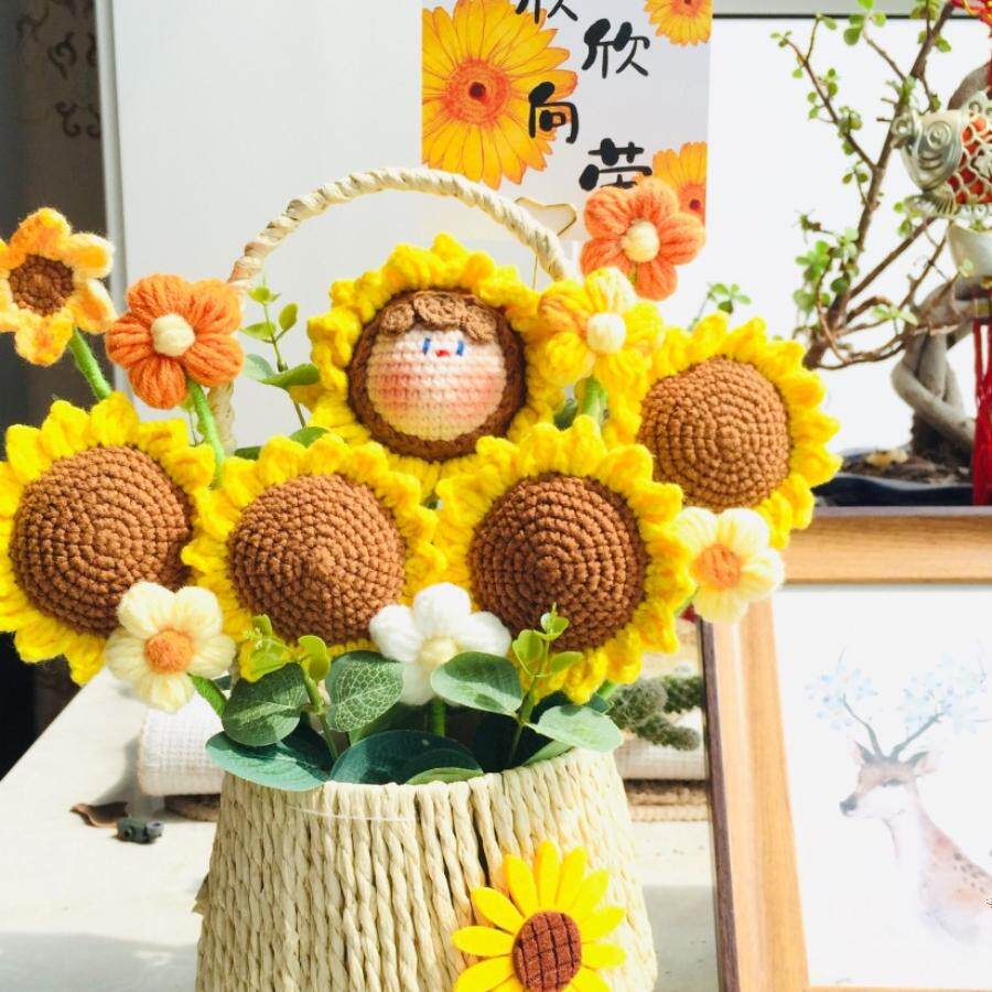 完成した手編み糸、ひまわりかぎ針編み、ロップラビットのミックス&マッチ、ロマンチックなブーケ、彼女への卒業ギフト