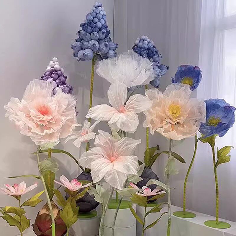 模擬紙アート花のしわ、手作りの結婚式の道、リードの花、ショッピングモール、美しい陳の結婚式装飾、大きな染色牡丹紙花