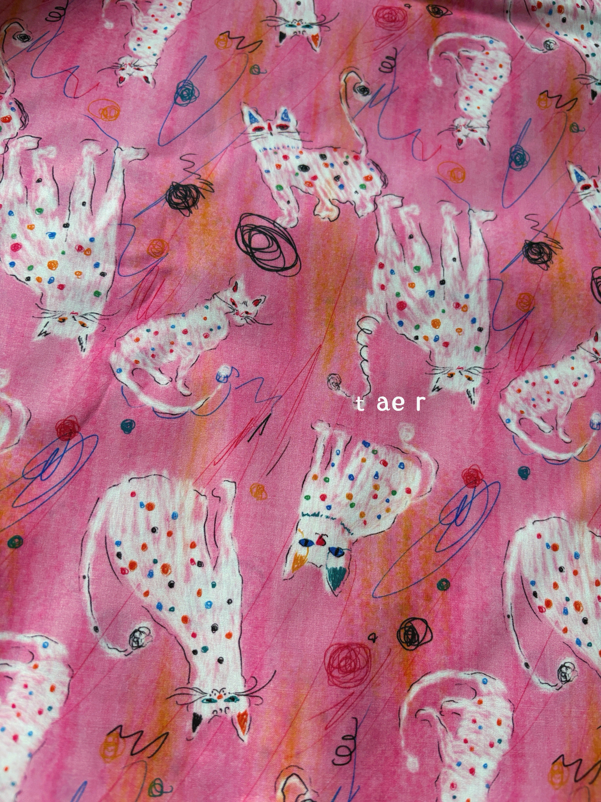 Taer Design Animal Printシリーズ オレンジキャットコットンファブリック ハンドメイドファブリックパッチワークコットン