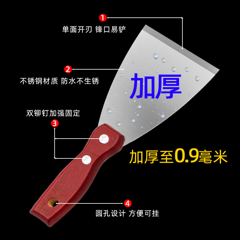 パテナイフ、シャベル、ステンレススクレーパー、バッチ、アッシュスクレーパー、パテ、装飾、クリーニングナイフ、濃厚塗料、小型シャベル