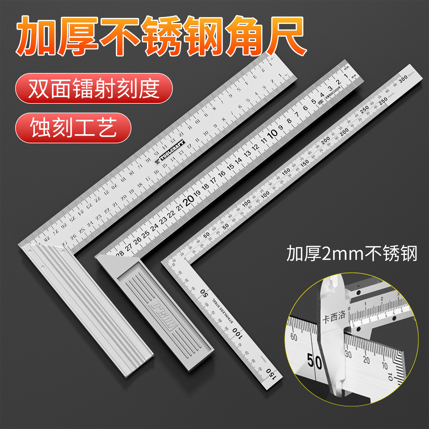 高精度直角定規 90度ステンレス鋼厚み角定規 木工 大型クラスト 多機能L字型コーナー鋼定規