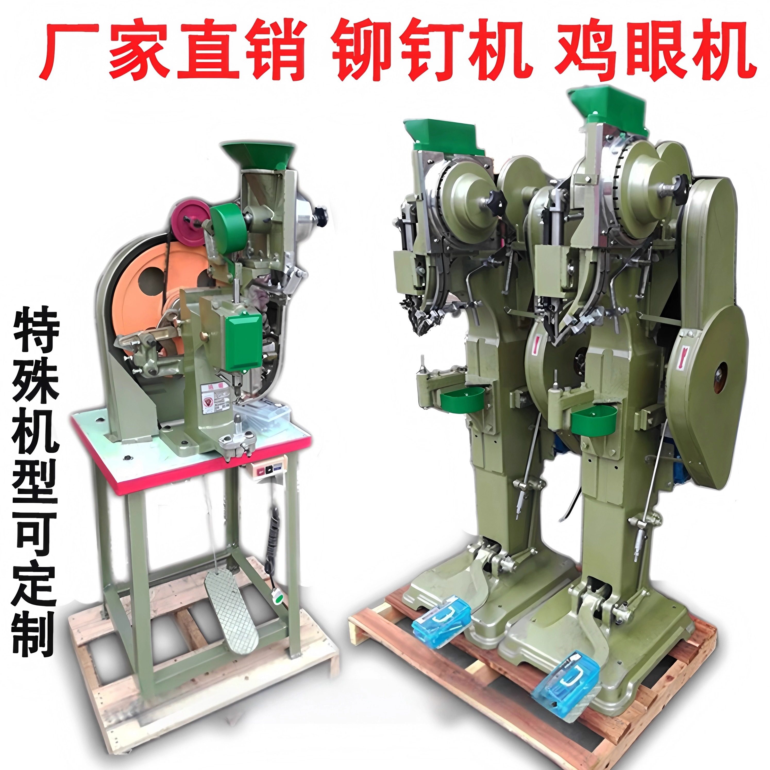 リベット打ち機、アイレットマシン、空気圧自動バックルマシン、型用アクセサリー、荷物キャスター、金具、折りたたみ椅子、リベット打ち機