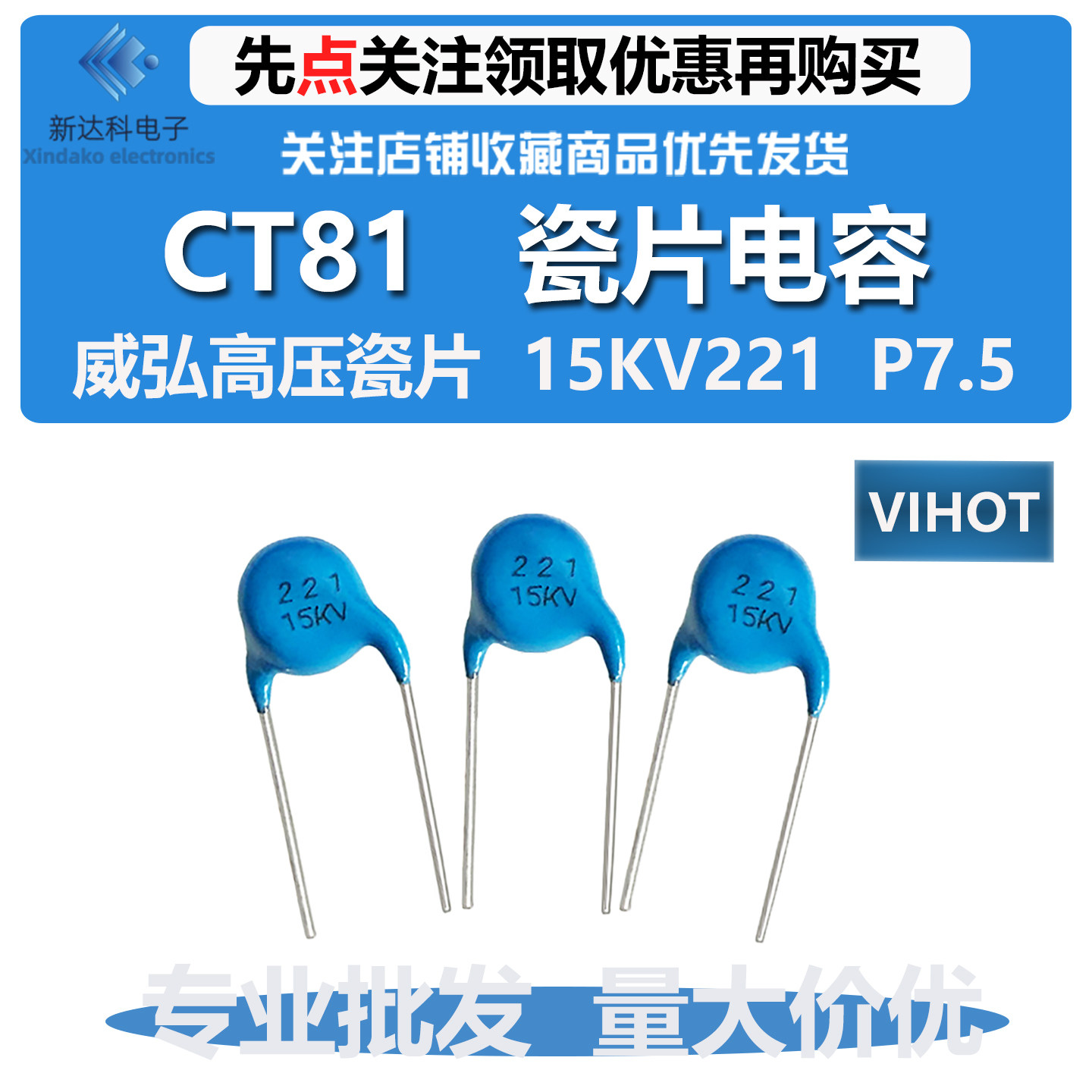 高電圧磁器シートコンデンサ 15kv221 P7.5 15KV220PF CT81 セラミックコンデンサ 6kv 10kv