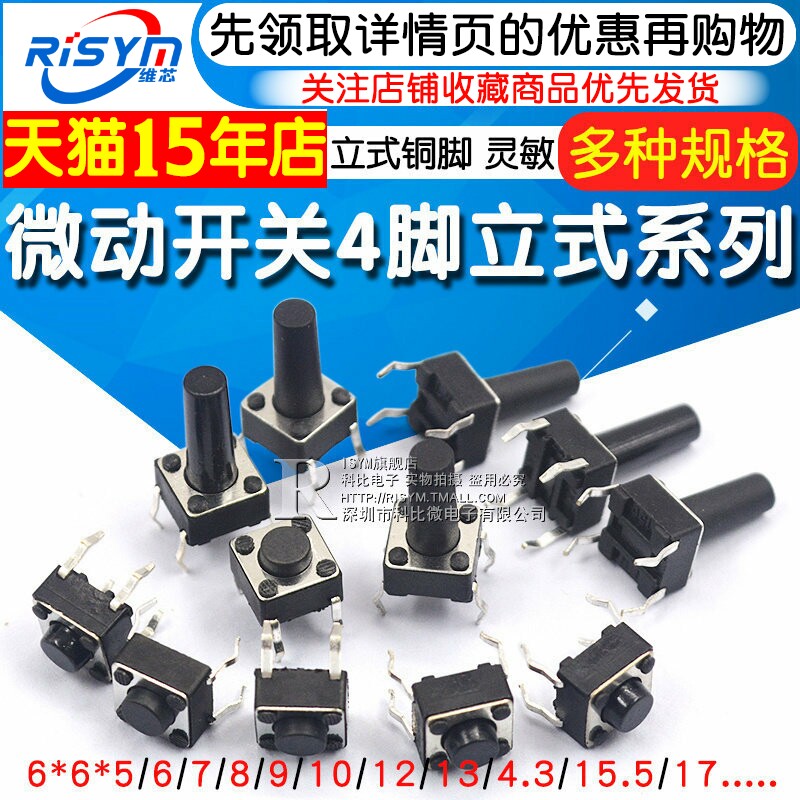 触覚スイッチピンボタン 6*6*4.3/5/6/7/8/9/10/11/12 垂直耐熱マイクロスイッチ
