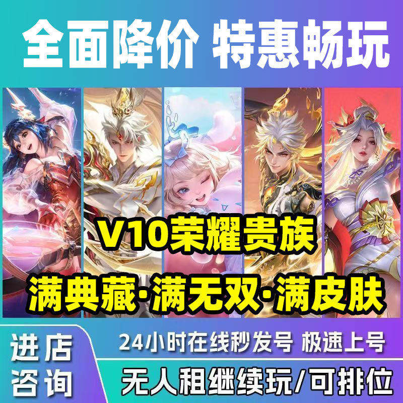 【24Hオンライン】王の名誉レンタル 安価な無敵V10フルスキンコレクション Android Apple QゾーンVゾーン