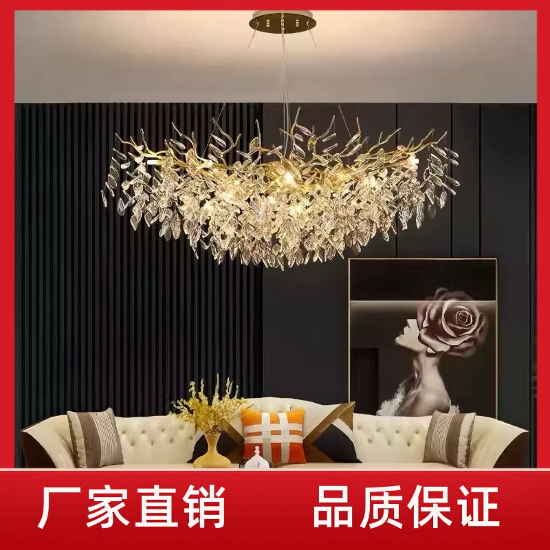 ゲストダイニングルーム、ライトラグジュアリー、モダンなフレンチクリスタルシャンデリア、新しい枝の形をした雰囲気のあるヴィラデュプレックスビル、創造的なアートランプ