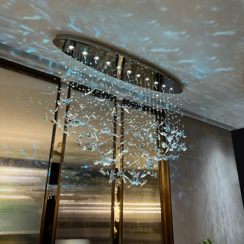 クリスタルの蝶のシャンデリア、レストランのライトラグジュアリー、夢のようなホテルのカーテン、バーアイランド、高級イタリアンヴィラデュプレックスビルの照明