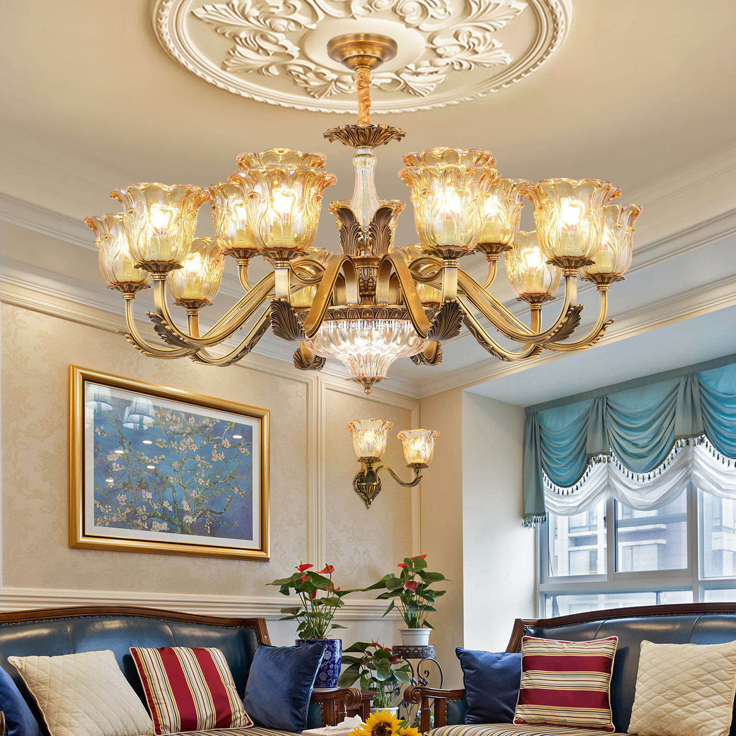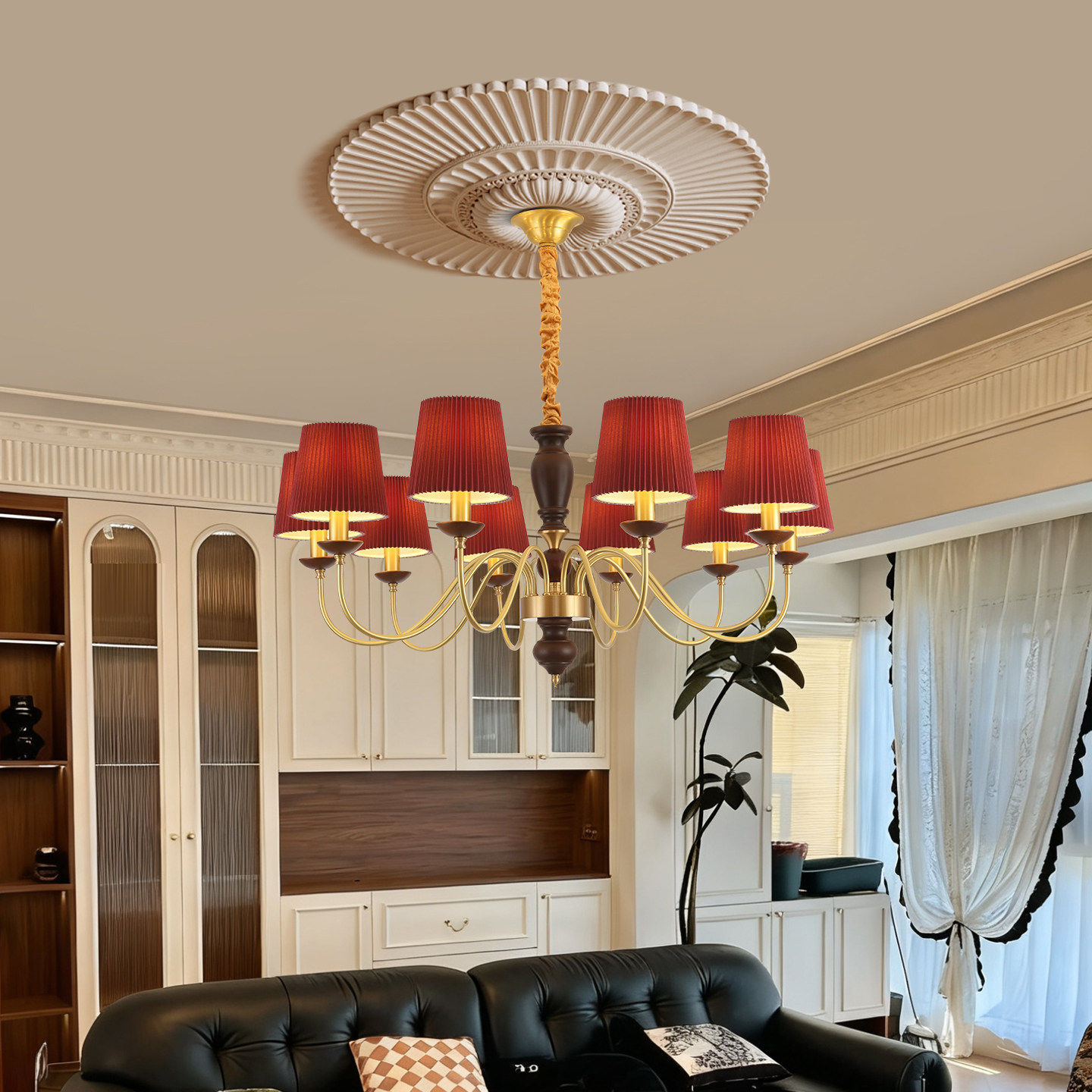 フレンチヴィンテージスタイル 2026年式リビングルームシャンデリア アメリカンヴィンテージフルカッパーウォールナットグレイン 寝室アイプロテクションホールランプ
