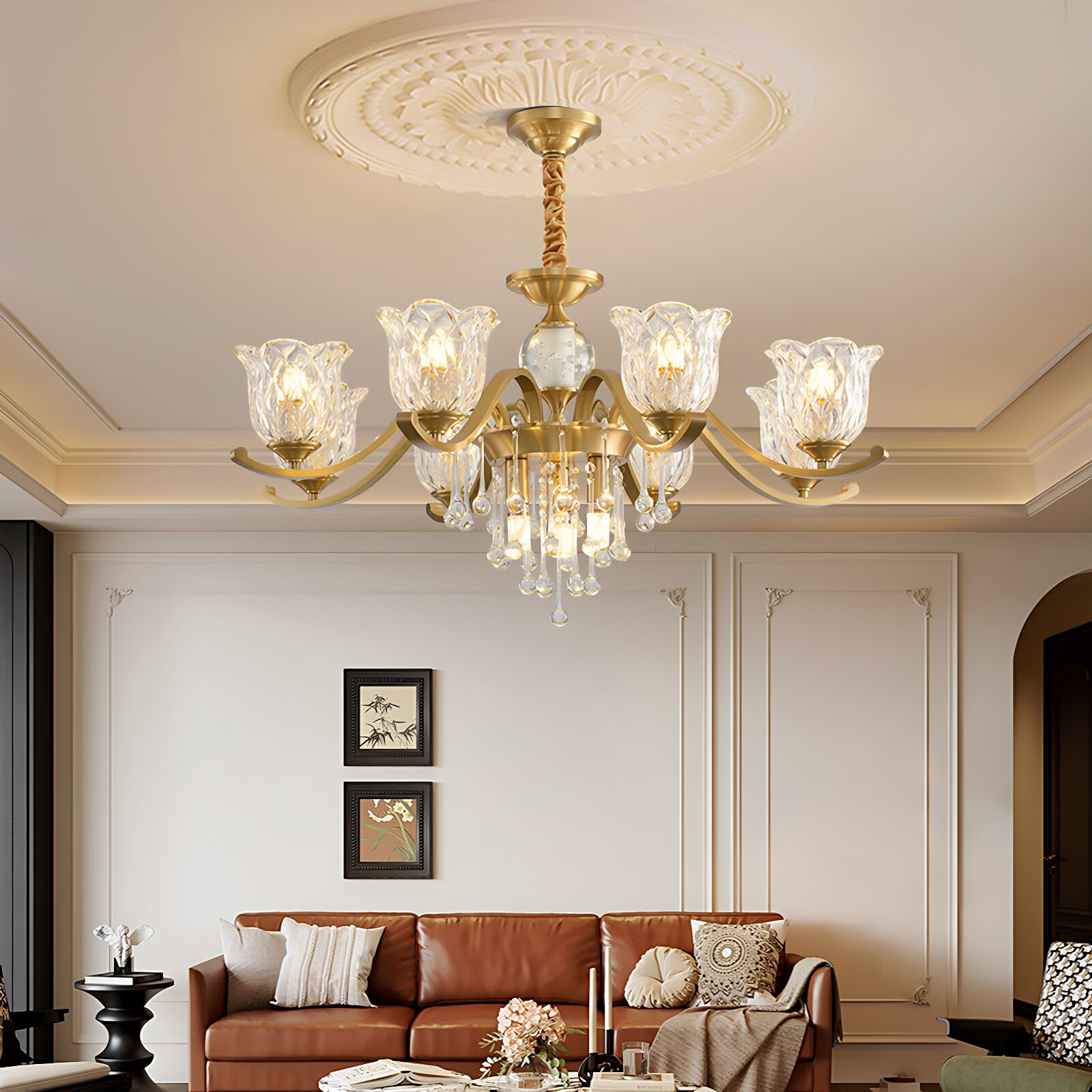 セリップ フレンチライトラグジュアリーレストランクリスタルシャンデリア アメリカンオールカッパーヴィラ リビングルームライト 高級アイランドテーブルランプ