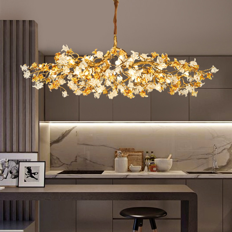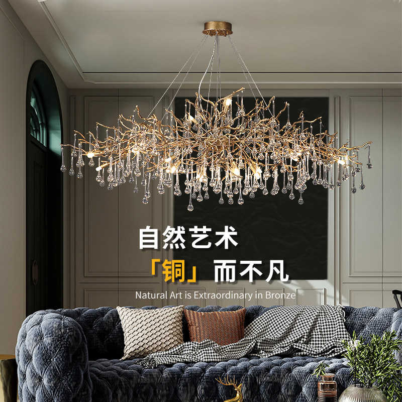 芸術的な創造性、モダンなライトラグジュアリーダイニングルームのシャンデリア、ヴィラのリビングルームクリスタルランプ、雰囲気のある高級オールカッパーのティールームバーランプ