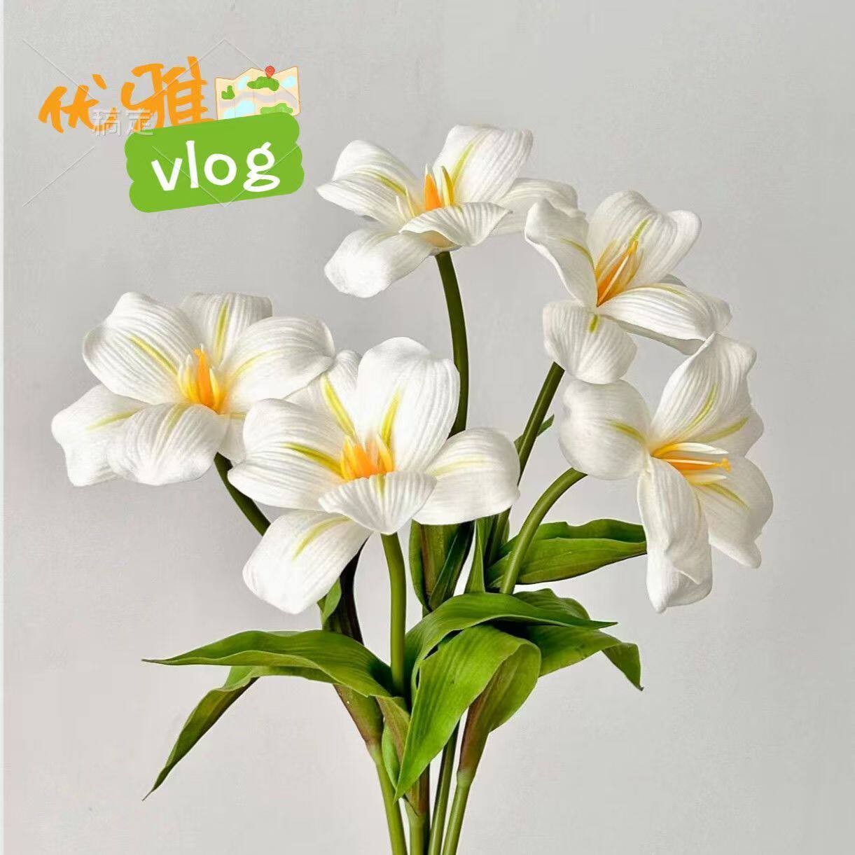 モダンシンプルシミュレーション フラワーブラウニー オープンチューリップPU フィール ホームリビングテーブルデコレーション フローラルオーナメント