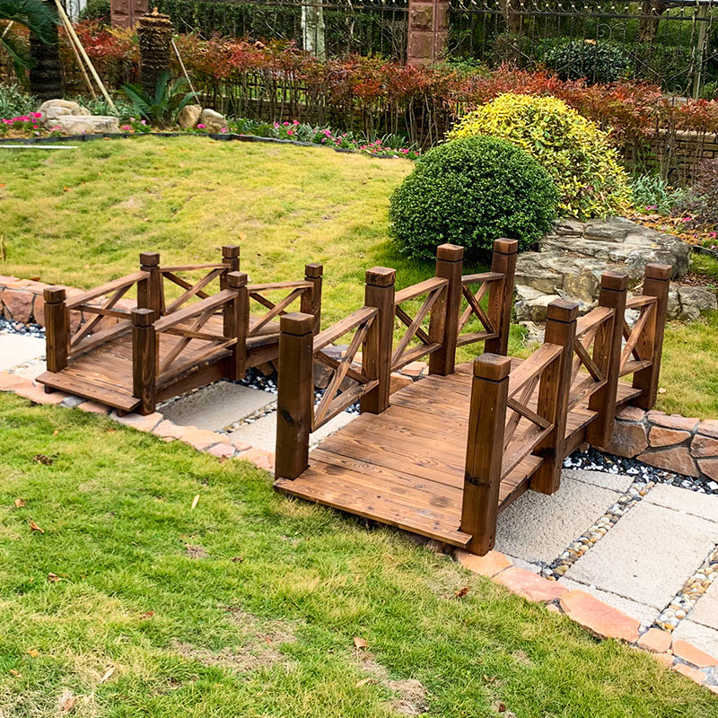 景観:小さな木橋、屋外防腐公園、中庭、魚池の板道、装飾、炭化木製アーチ橋、景勝地、七西カササギ橋
