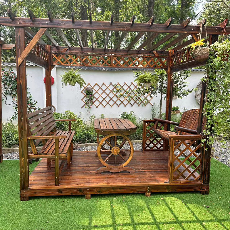 ブドウトレリス中庭、防消毒材、屋外クライミング、バイントレリスヴィラ、屋外無垢材パビリオン、炭化したシンプルなガーデンガゼボ