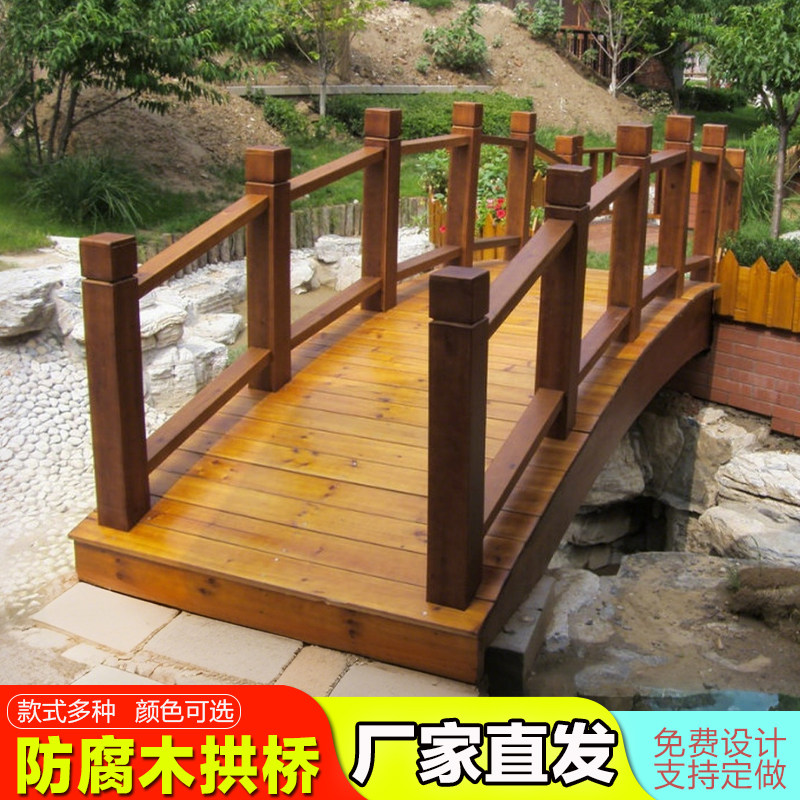 屋外の防錆木橋、幼稚園橋、無垢木橋、魚池流水造園橋、庭園の造園装飾アーチ橋
