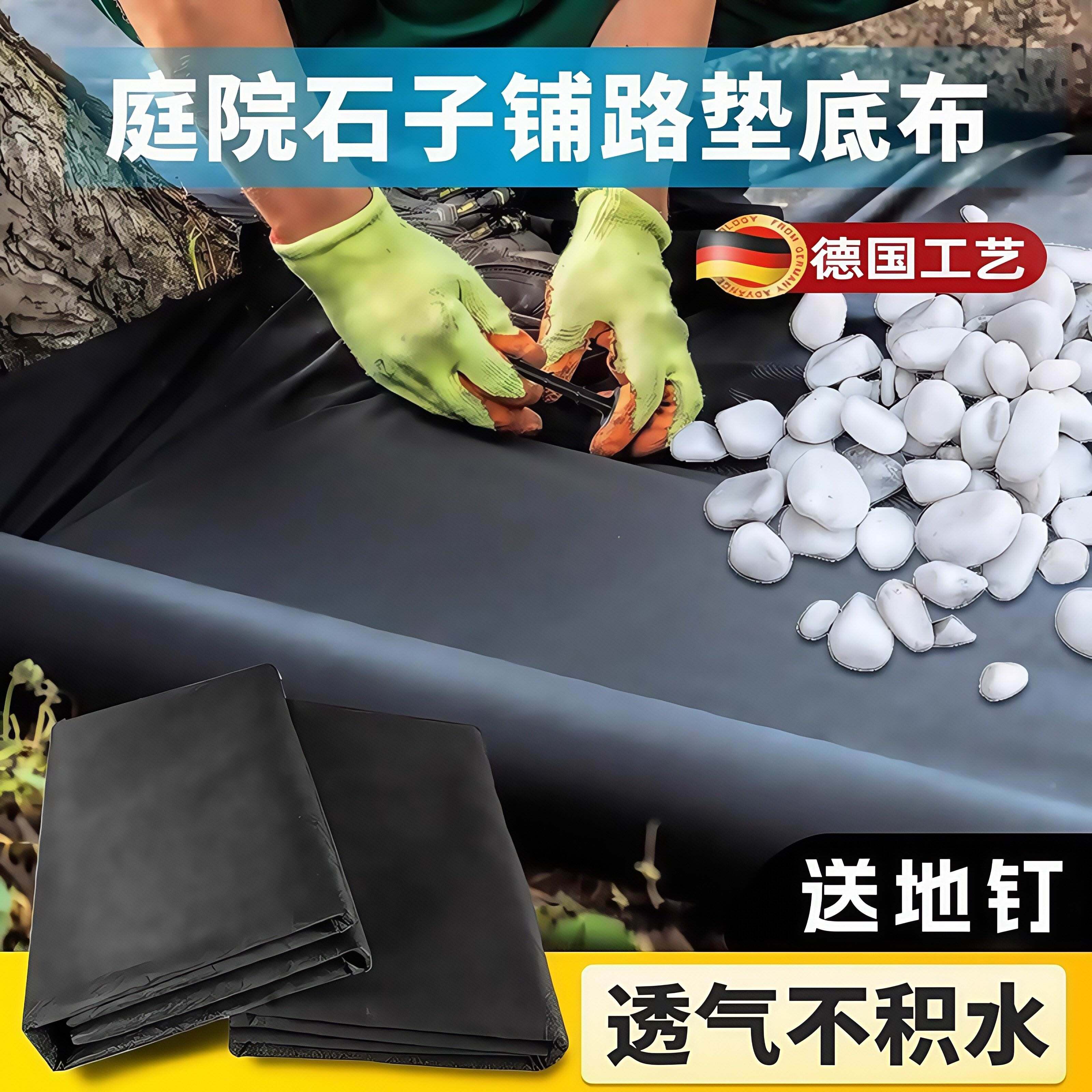 ドイツのボトムクロス、ジオテキスタイル、園芸用緑化、防草布、中庭、仕切り、芝生布、敷石、小石、黒い不織布