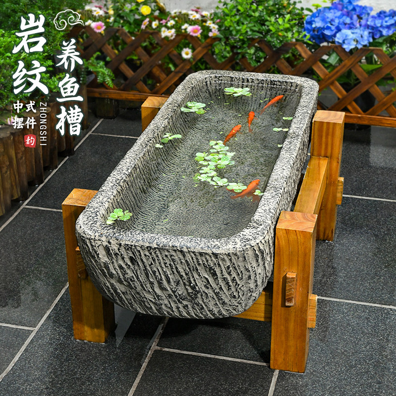 屋外中庭、長方形の人工石の水槽、大型水槽、古代の方法、養殖、水槽、プール、庭園、装飾、造園レイアウト