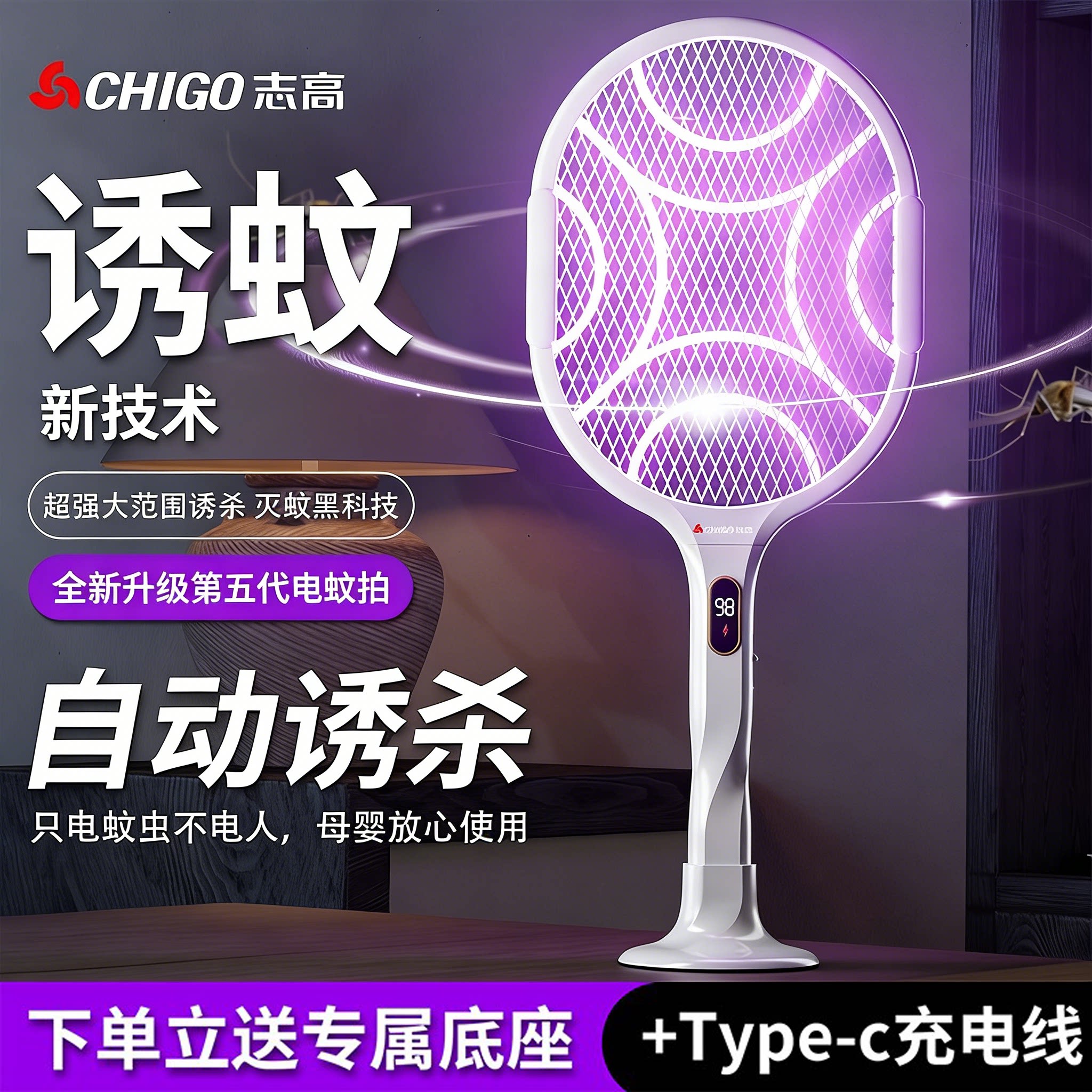 チゴ電気蚊たたき 充電式家庭用超強力な蚊たたき 蚊の電源網 本物の蚊殺しランプ 2-in-1