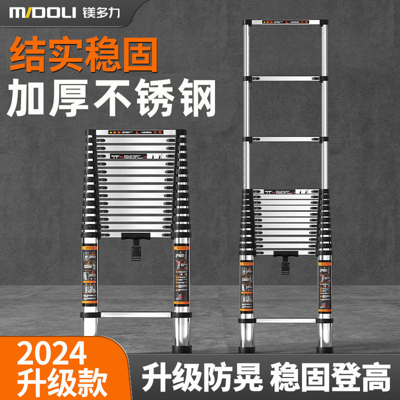 新しいステップ テレスコピックはしごリフト エンジニアリングラダー アルミニウム合金直線はしごポータブルホーム 多機能階段折りたたみ式ステンレススチール