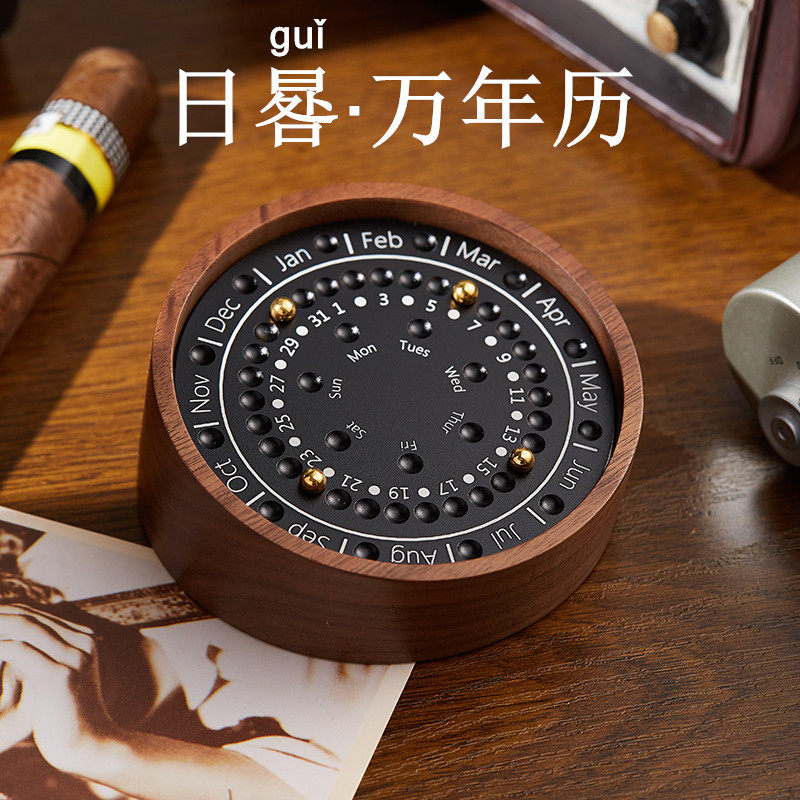 日時計、星、テーブルカレンダー、永久カレンダー、無垢材のカレンダー、オフィスのデスクトップオーナメント、クリエイティブなホームデコレーション、男女へのギフト