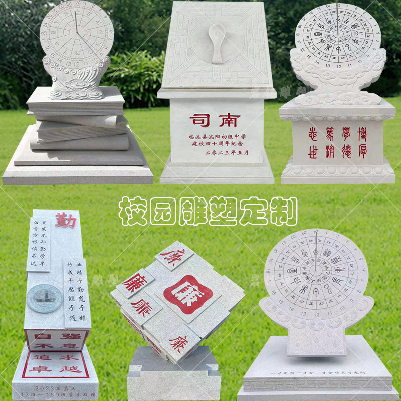 石彫りの日時計、白玉、古代タイマー、時計、キャンパス文化彫刻、卒業校歌の贈り物