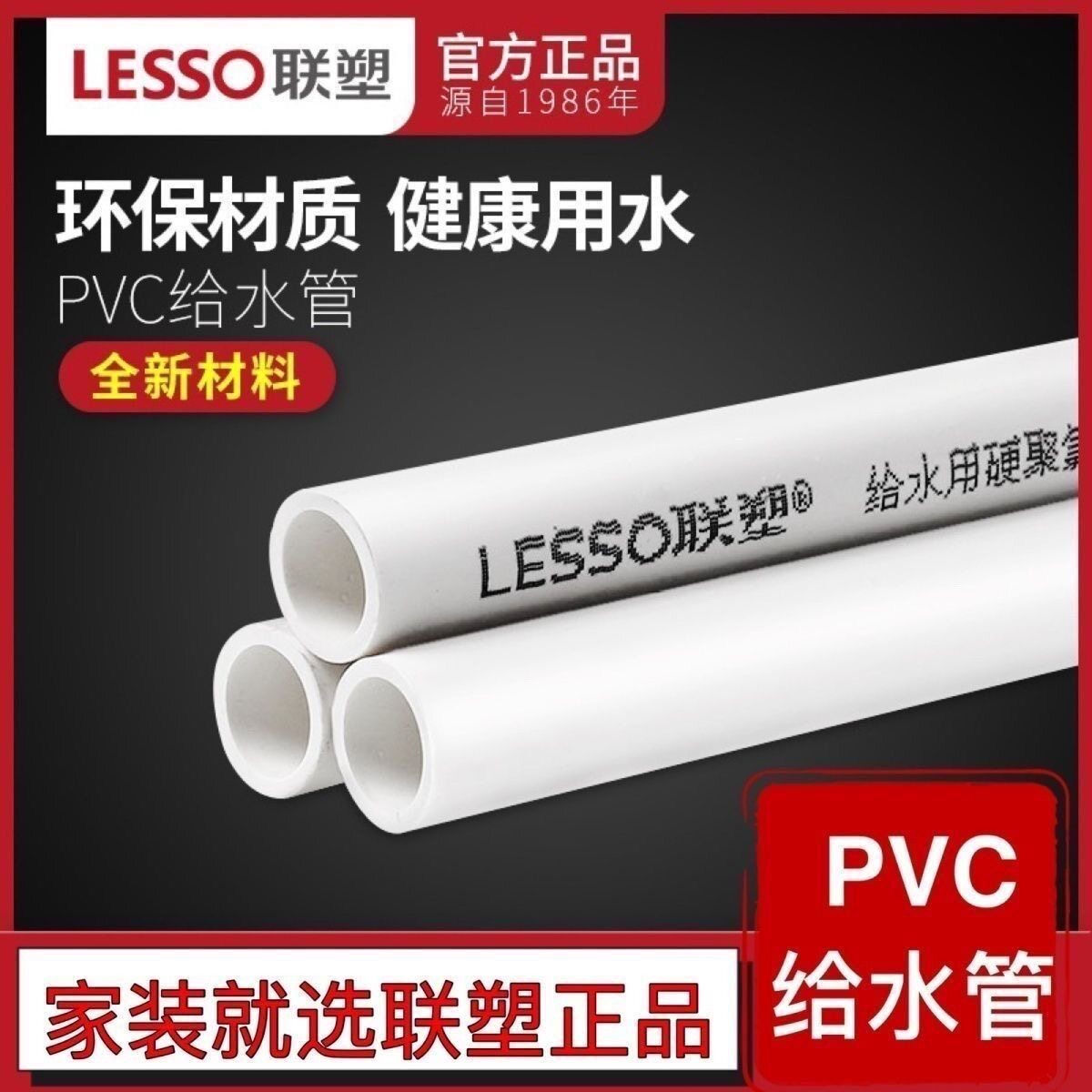 蓮蘇PVC給水管、厚みを増した家庭用水道管、配管、継手、白い本物の配管