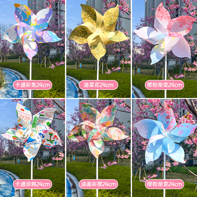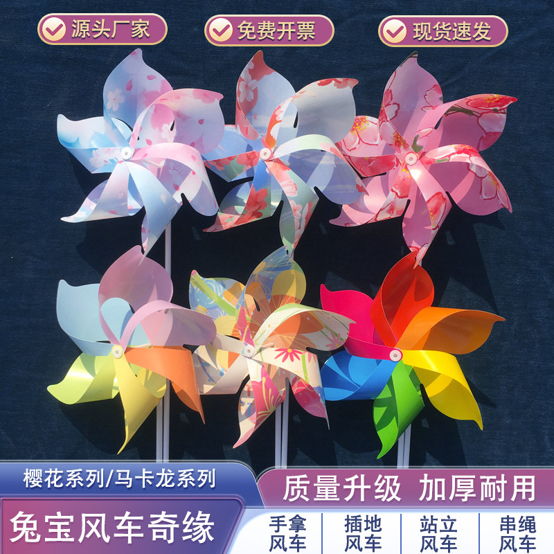 桜祭り風車 マカロン プラスチック幼稚園のダンス小道具 木の棒を持って回転させて床を差し込み、風車を飾る