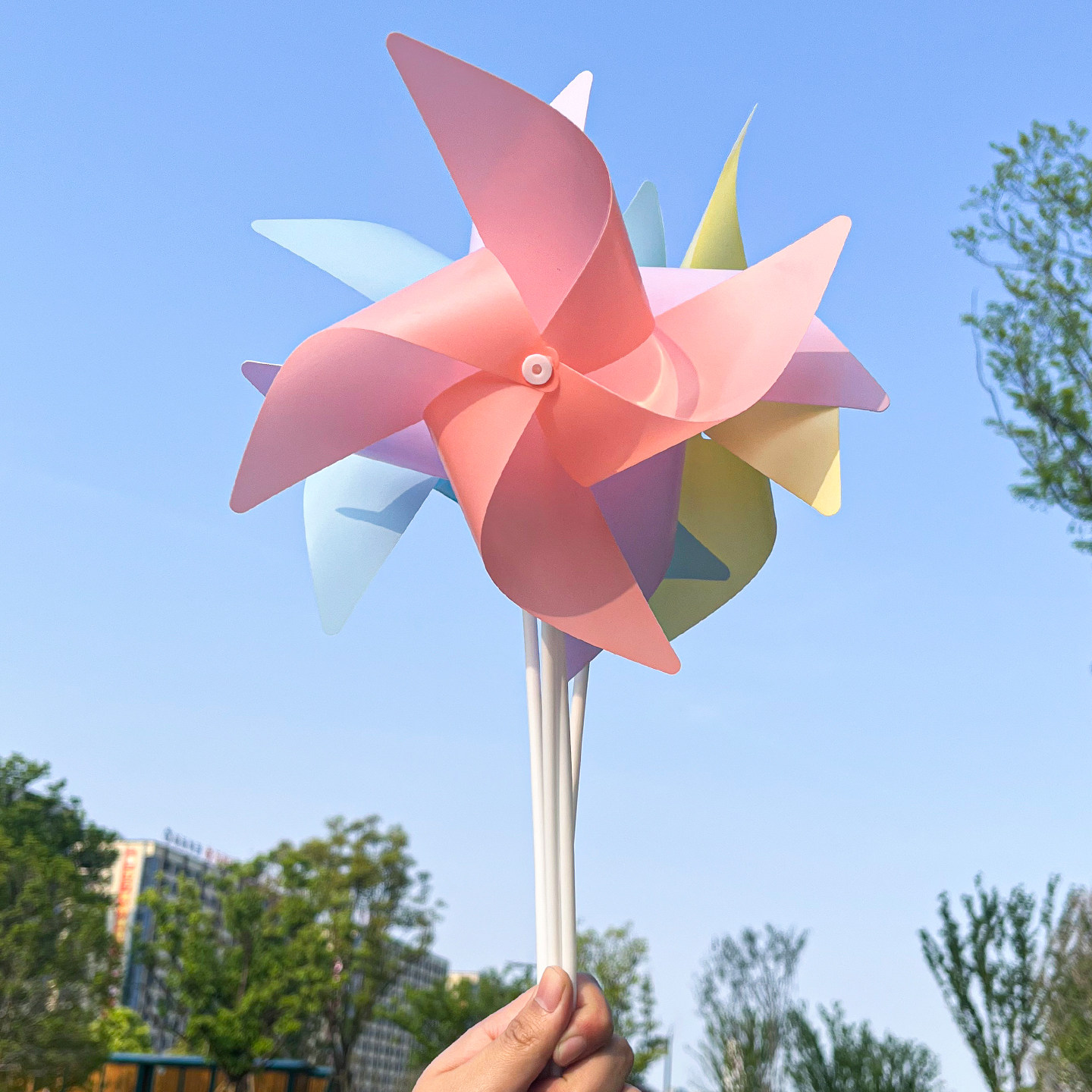 風車、カラフルな屋外装飾、大きな風車ダンス小道具、6月1日のパフォーマンス、回転玩具、子どもたちが小さな風車を持つこと