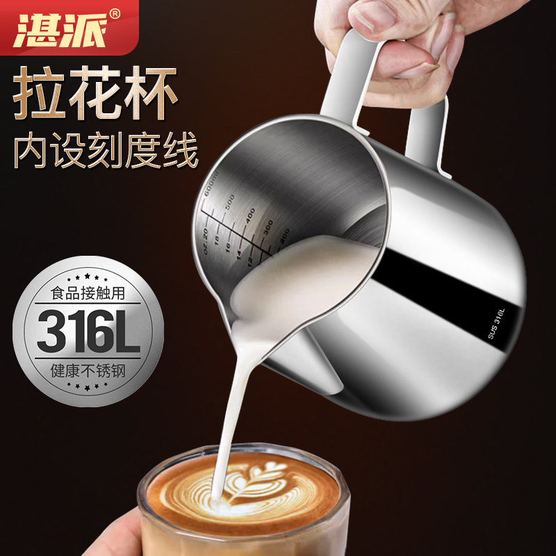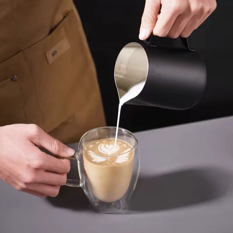 ラテアートカップ、ステンレス製ミルクフォームカップ、とろみ付きコーヒーラテティーポット、高級コーヒー、ミルクティーショップ用品、尖った注ぎ口のラテアートジャー