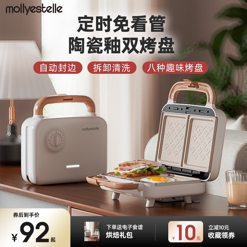 モリーエステル ダブルプレートサンドイッチ 朝食マシン ホームタイム 多機能ワッフルライト フードマシン ブレッドマシン