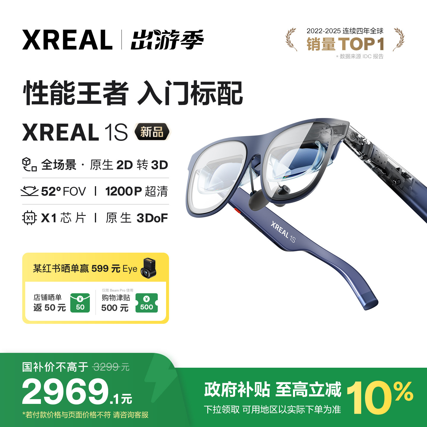 XREAL 1S ARスマートグラス、ネイティブ2Dから3Dへの自開発X1チップ、500インチARアンテリアル、非VRAIメガネ、モバイルバーチャル大型3D映画