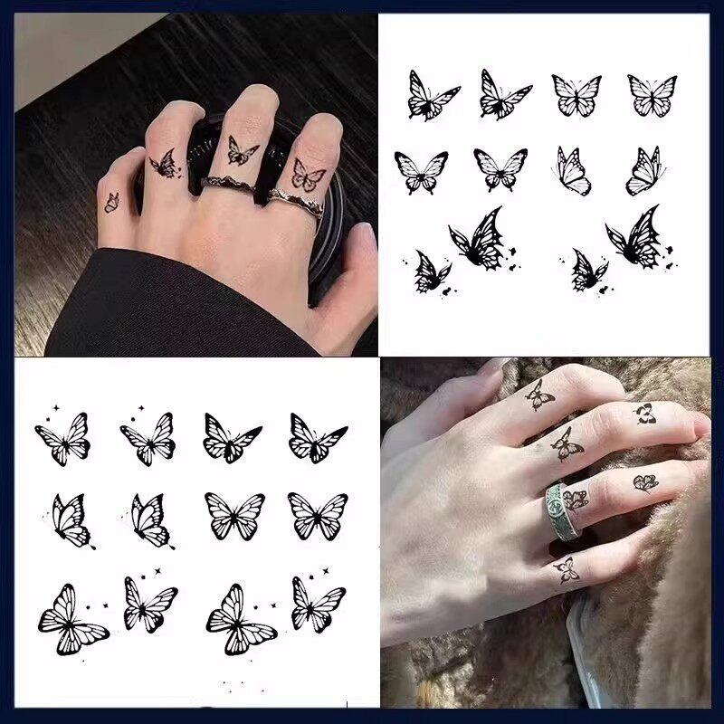 バタフライタトゥーステッカー 防水性と長持ち 黒いプリントのリングステッカー 装飾用ステッカー 指ステッカー タトゥー