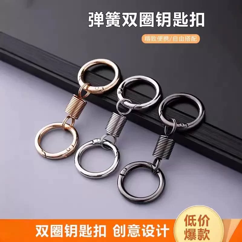 キーチェーン:2024年新春 ダブルサークルキーチェーン、リングウエストハンギング高級ペンダント電気自動車キーチェーン