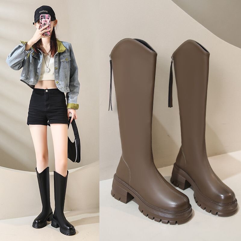 小さめの厚底ブーツ 女性用 2025年秋 新しい膝丈ナイトブーツ ロングブーツ 女性用秋冬ブーツ