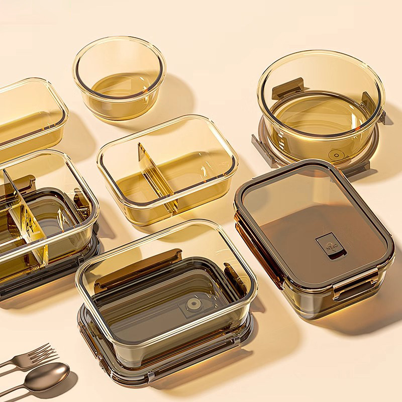 ガラスのランチボックス、電子レンジ加熱用の特殊ボウル、学生のオフィスワーカー、ランチボックス、別々の弁当、密封されたクリスパーボックス