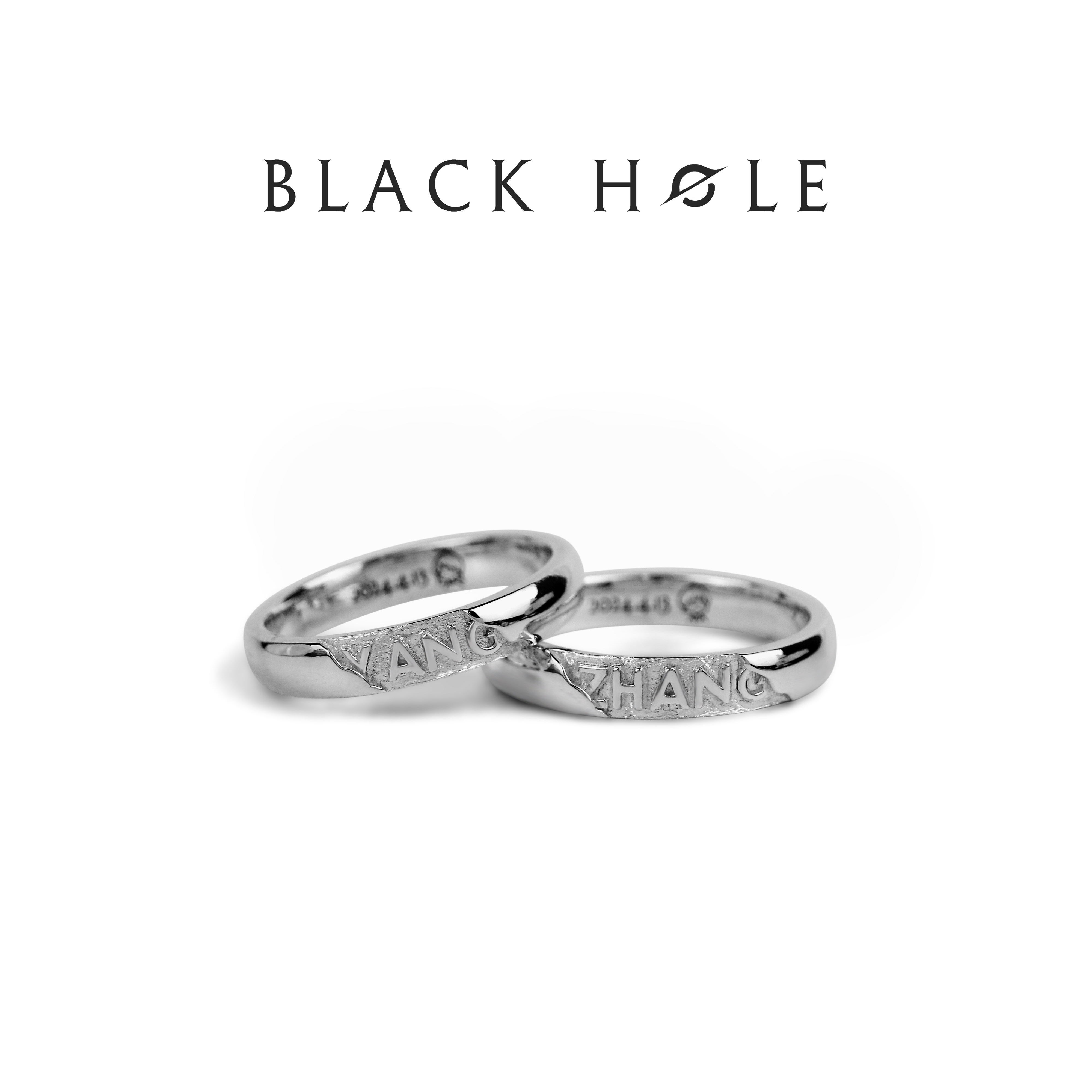 BLACK HOLE「YOUR Name」スターリングシルバー999純銀カップルリング記念ギフト 彫刻リング