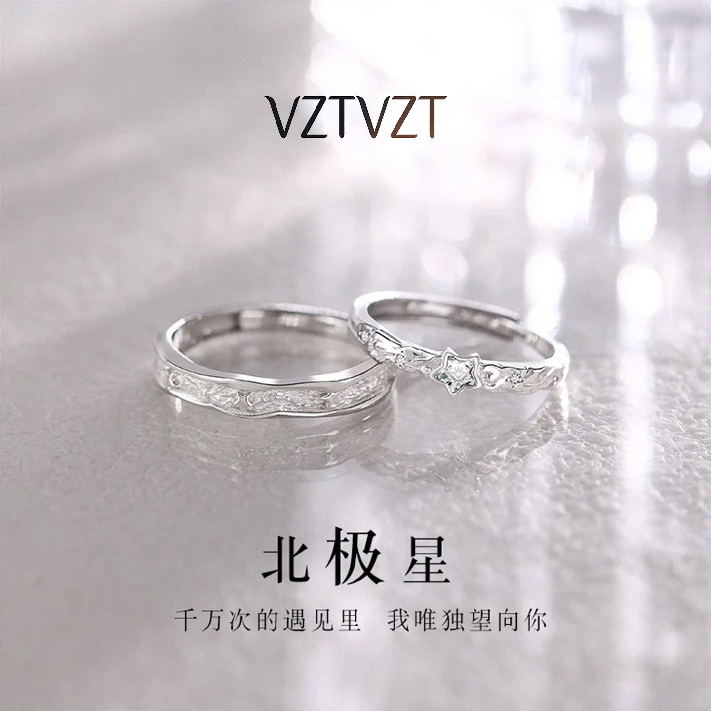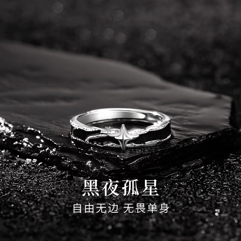 ポラリスカップルペアリングフルシルバーS999スターリングシルバーリングペアニッチデザインの男性向け誕生日ギフト