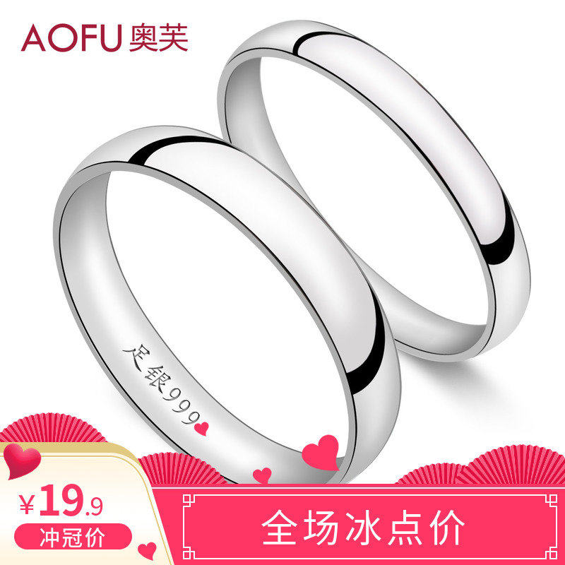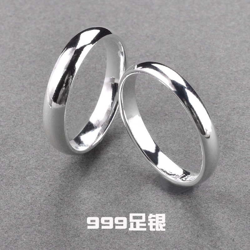 男性用指輪、無地の指輪、女性用999スターリングシルバーカップルクローズドマウスリング、軽いラグジュアリー彫刻、ニッチなデザイン、結婚祝い