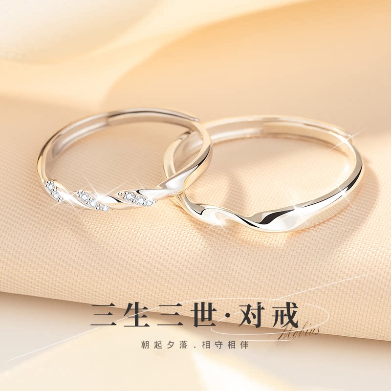 モビウスリング カップルリング スターリングシルバーのニッチデザイン 男女学生対応のシンプルなリング彫刻ペア